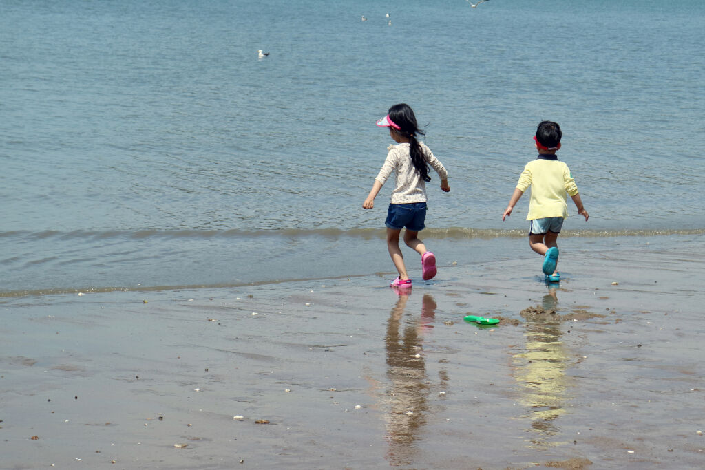해변을 걷고 있는 아이들