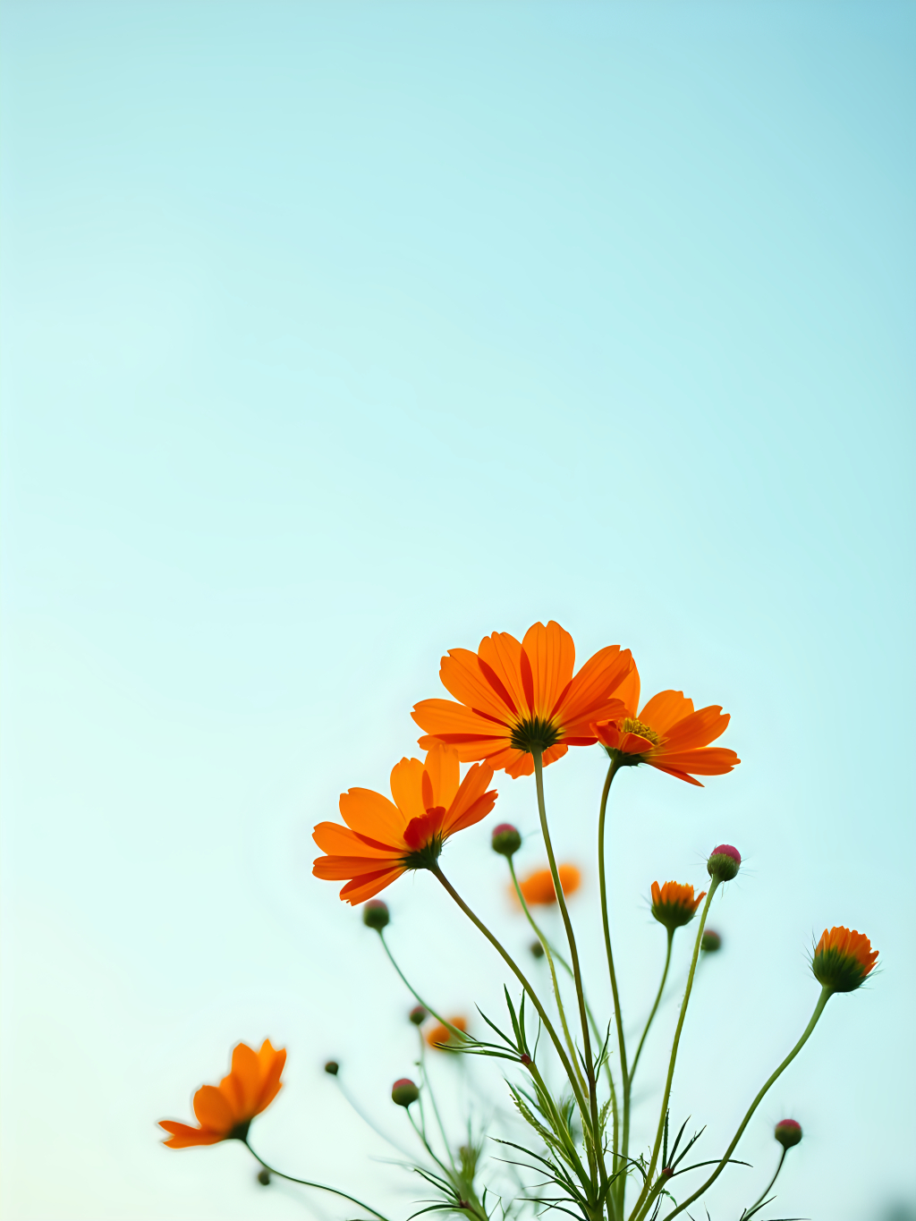 오렌지 코스모스 꽃들