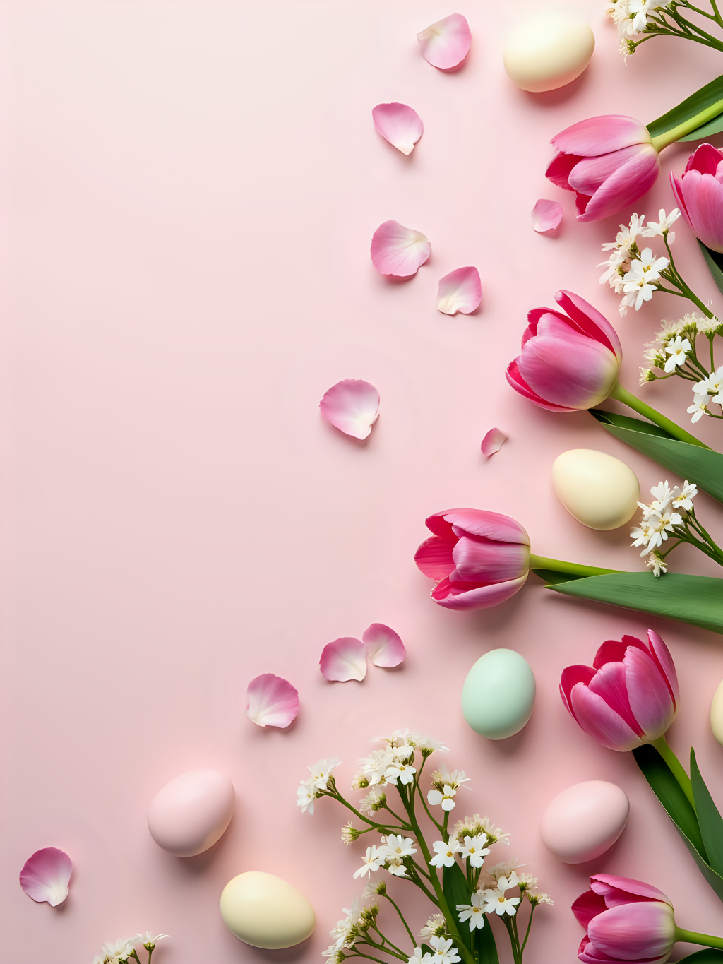 분홍 장미와 부활절 달걀