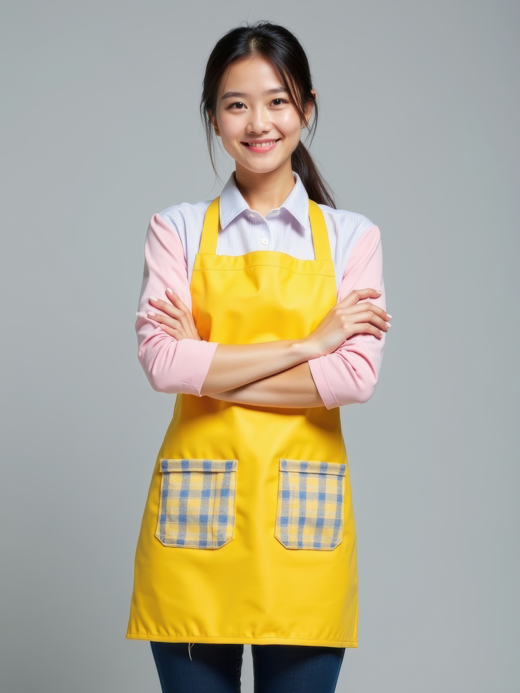주머니 달린 노란 앞치마