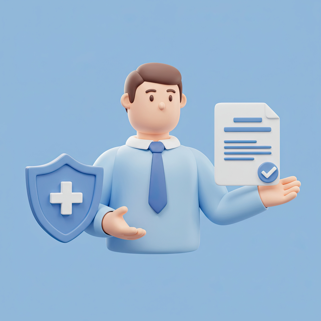 3D 만화 캐릭터, 문서와 방패를 들고 있음