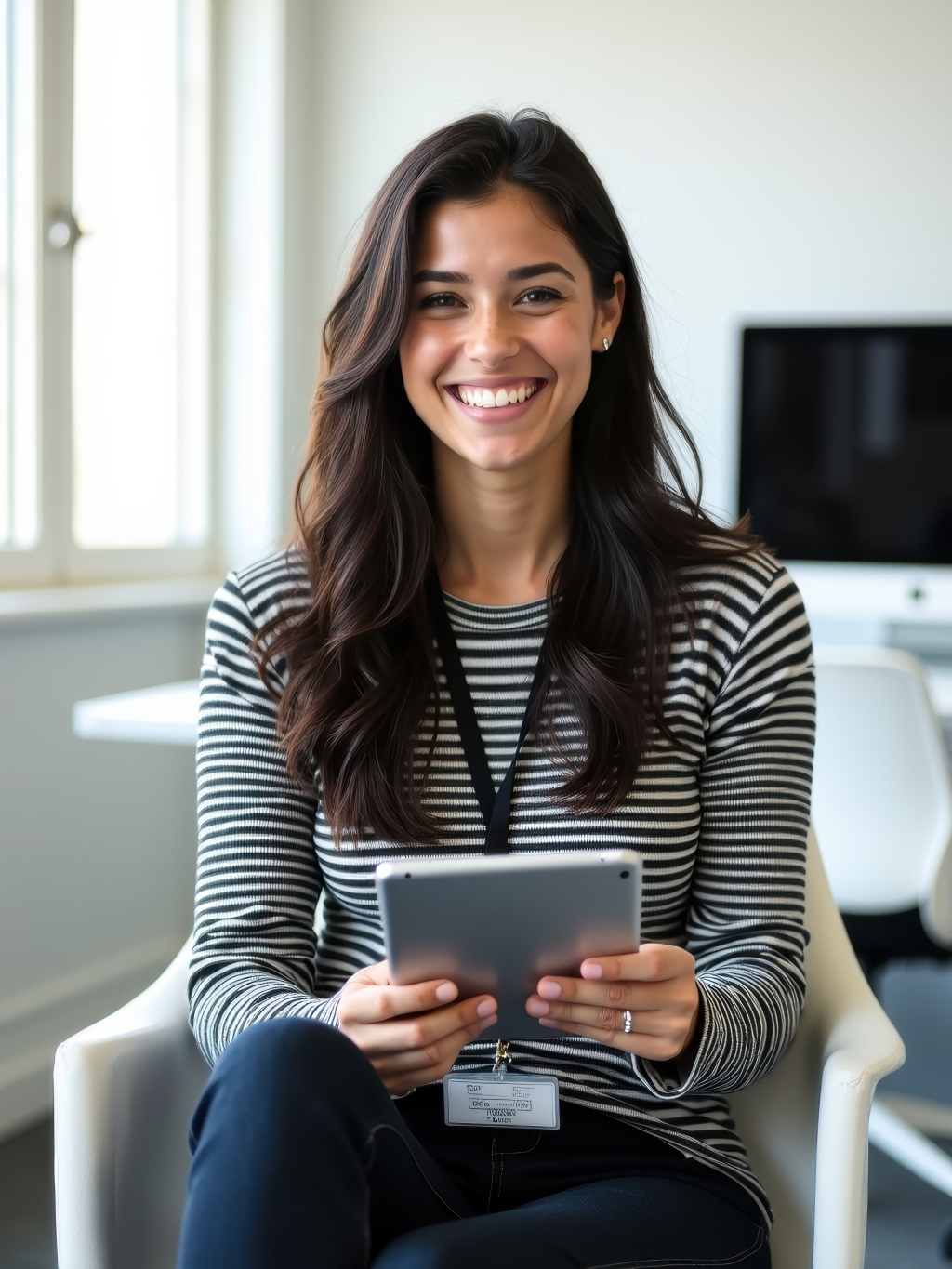 태블릿을 들고 있는 여성