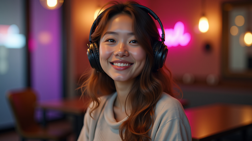 헤드폰을 쓴 젊은 여성