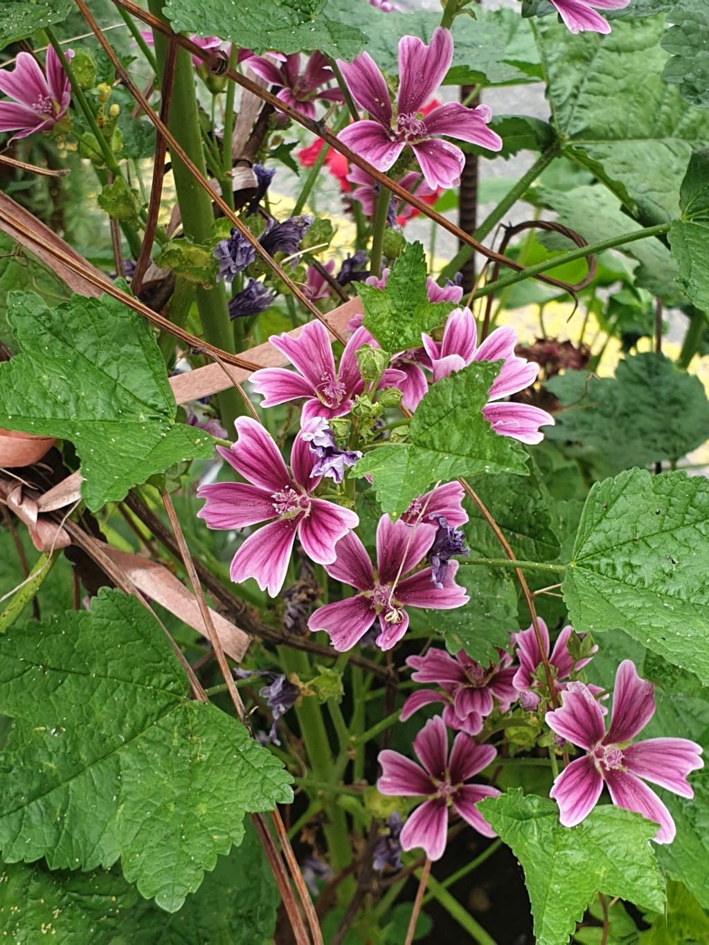 정원에서 핑크 꽃들