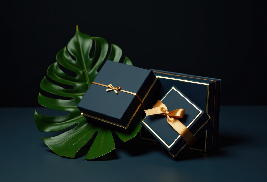금색 디테일의 어두운 상자