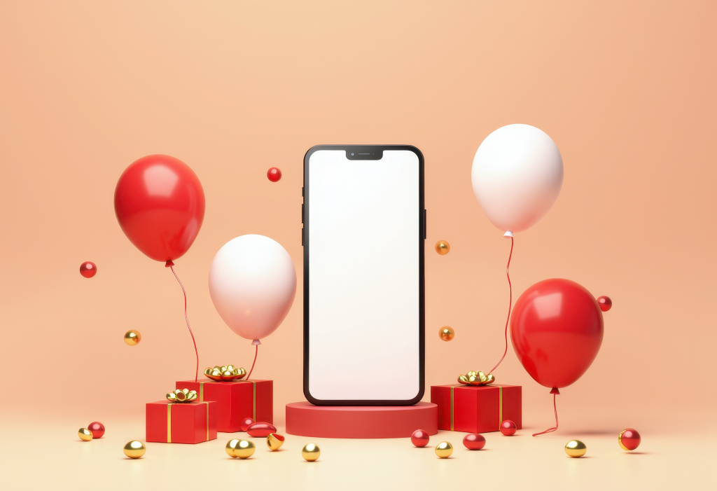 풍선과 함께 미니멀리스트 제품 전시