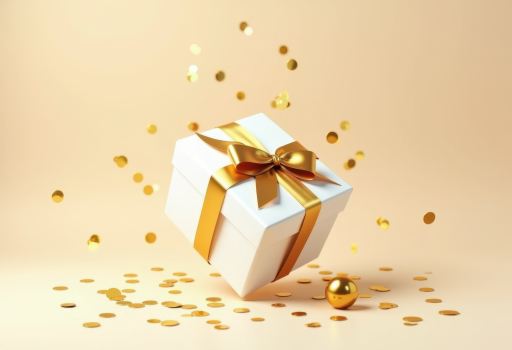 흰색 리본과 함께한 선물 상자