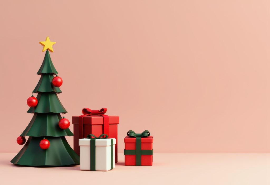 선물 상자와 함께 장식용 작은 크리스마스 트리