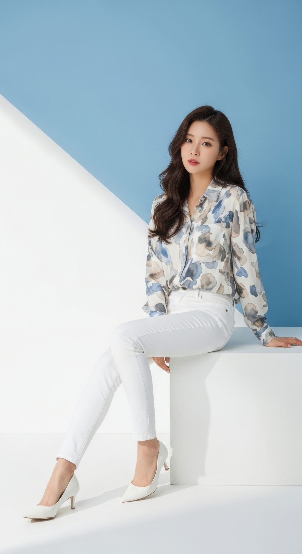 흰 바지 와 힐 을 입은 여성