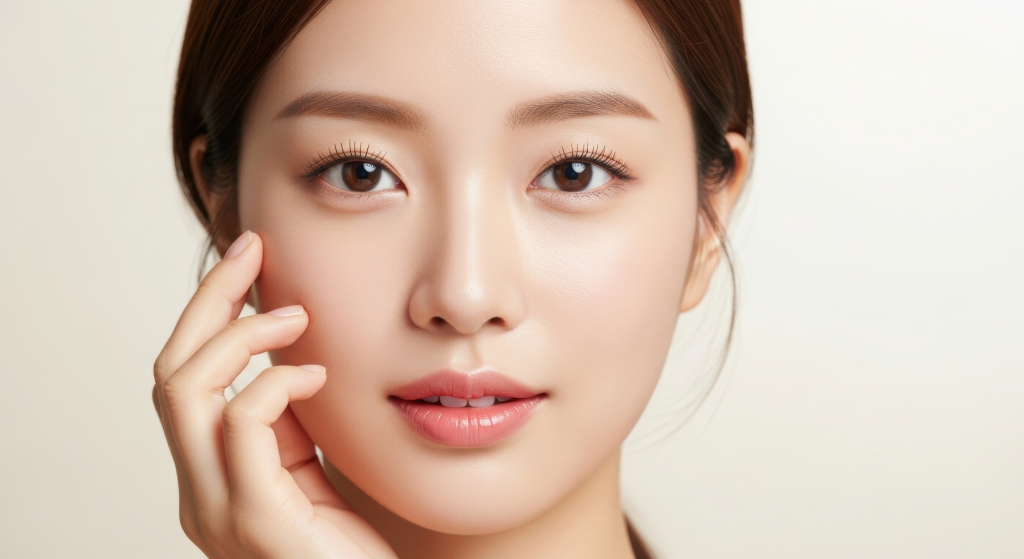얼굴에 손을 얹은 아름다운 여성.