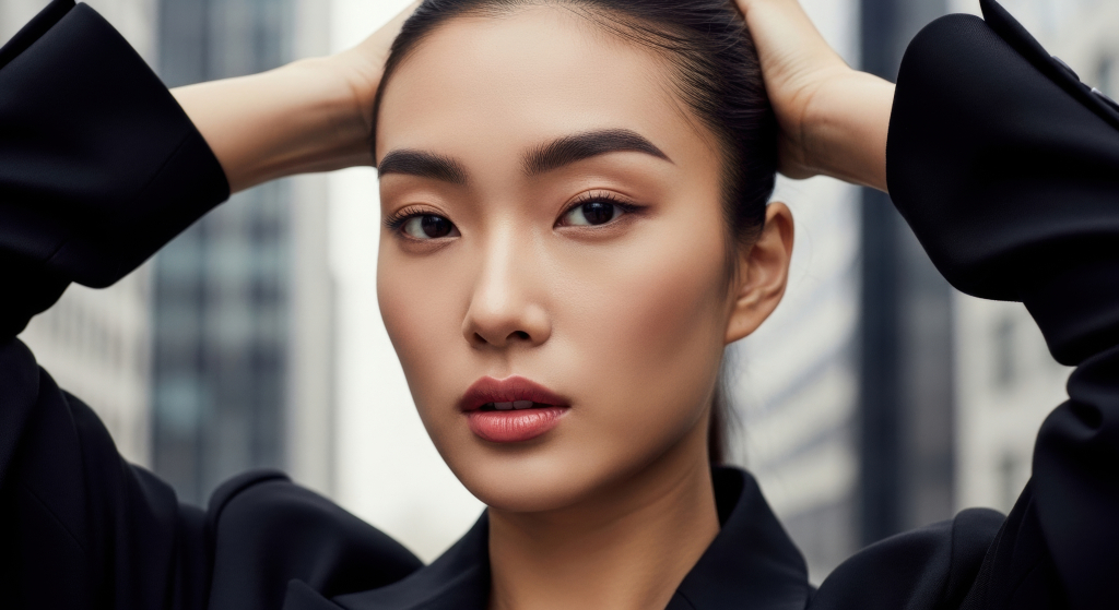 검은 코트를 입은 아름다운 여성