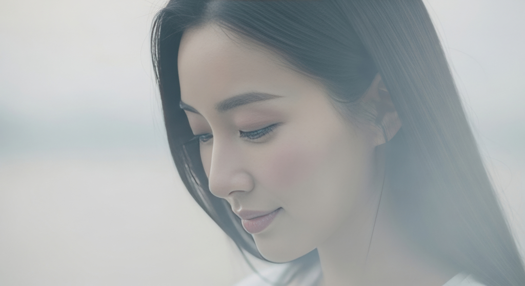 젊은 여자가 아래를 바라보는 모습